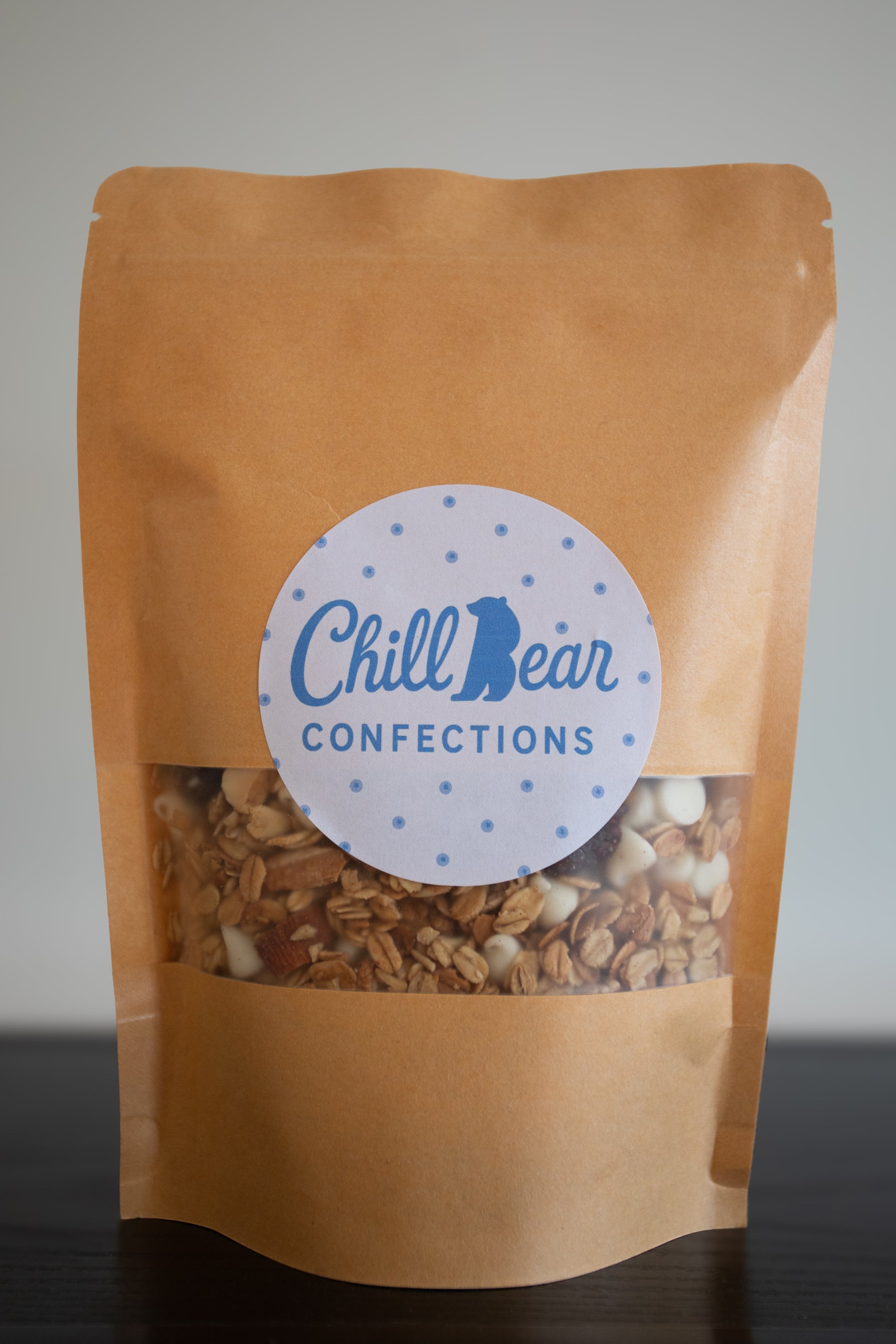 Our cranberry white chocolate granola is a sweet, and crunchy blend made by hand in small batches. Rolled oats and toasted almonds are baked with a touch of maple, then tossed with dried cranberries and creamy white chocolate chunks. It’s the perfect mix of flavors—ideal for breakfast, snacking, or gifting.