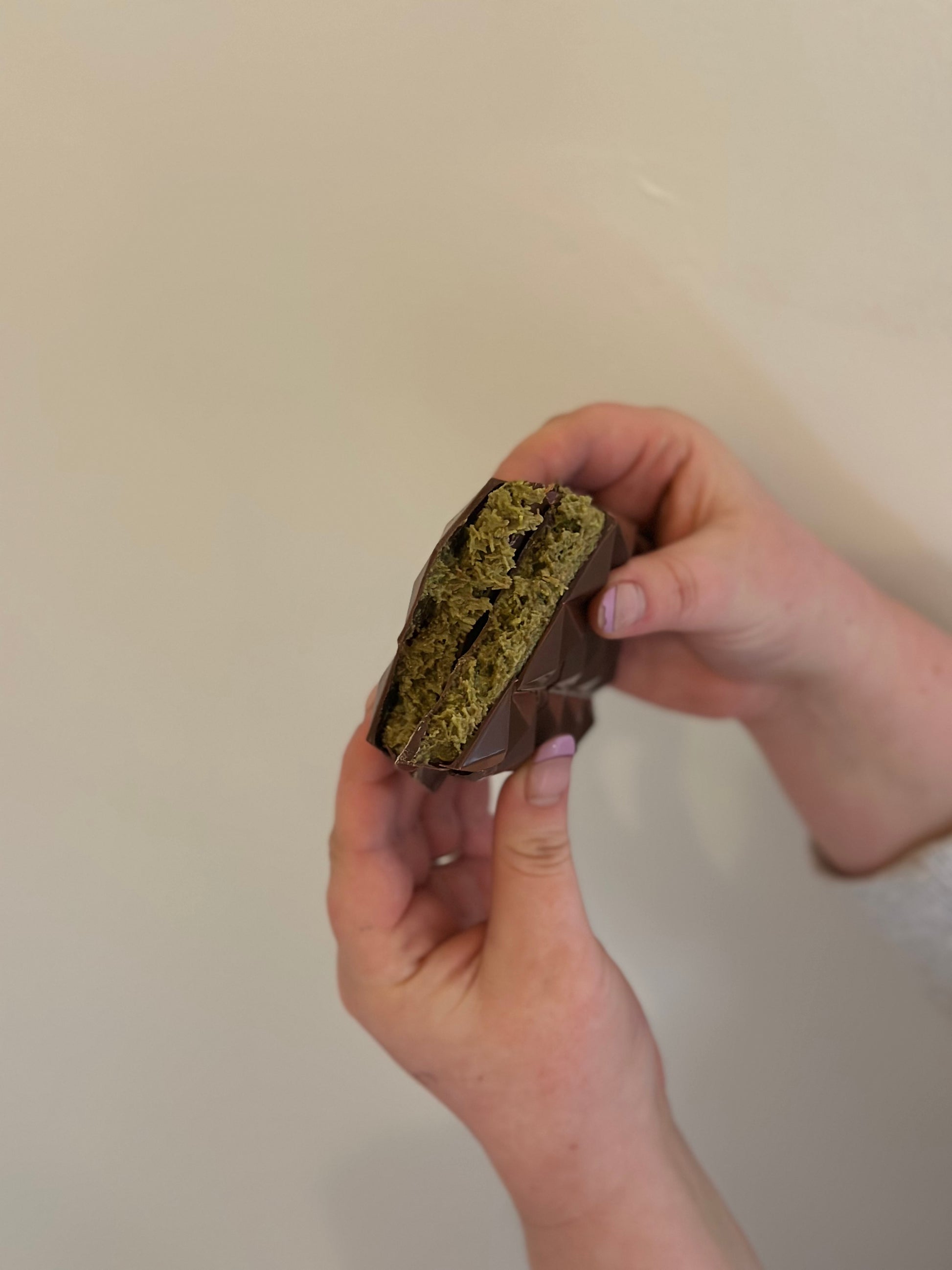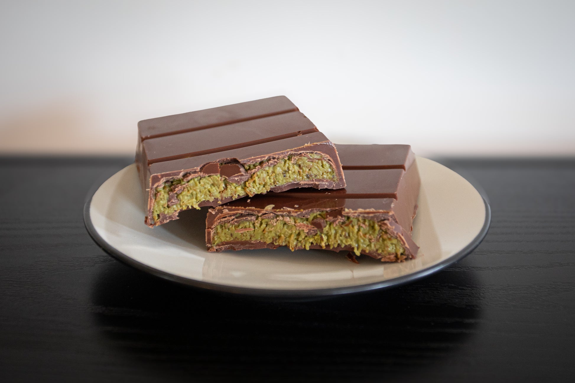 Ghiradelli milk chocolate filled with luscious pistachio creme, salty tahini and golden crispy knafeh filling. Hand-poured and filled in Lincoln, RI.